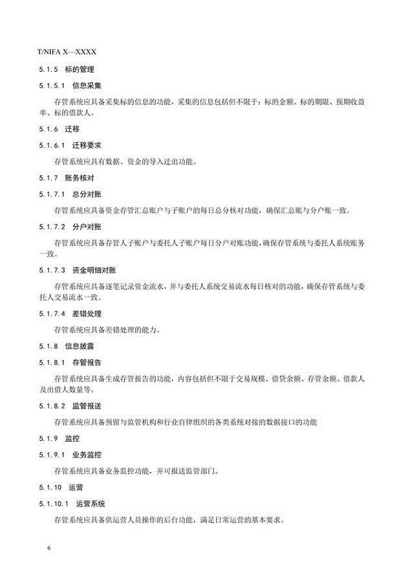 同时,业务规范征求意见稿规定了存管人、业务管理、业务运行和风险监测 的要求。
